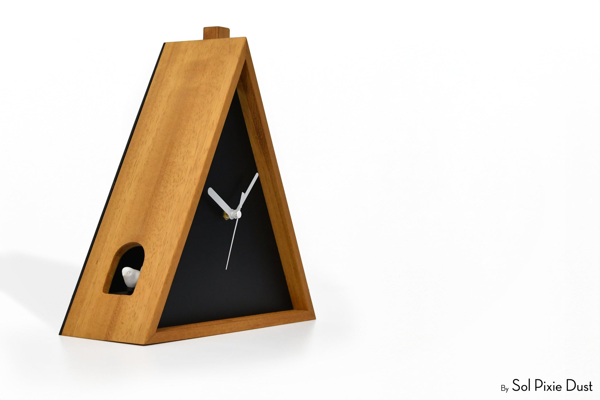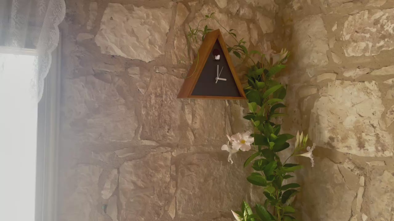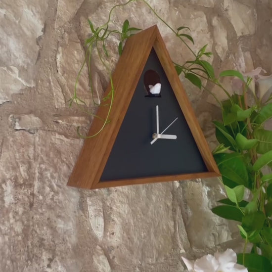 Cabin Cuckoo Bird Wall Clock - Table Clock - Solid Iroko Wood or White Oak