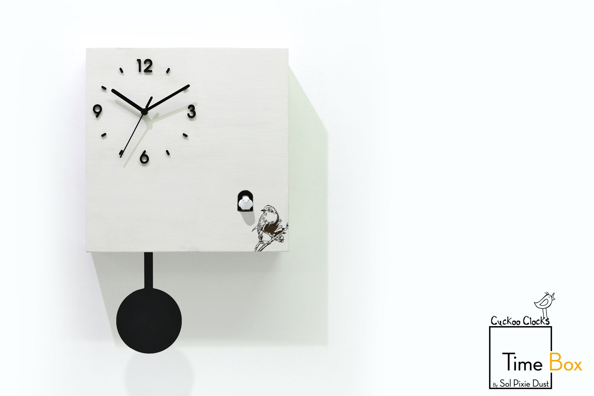 Time Box Modern Cuckoo Bird. Cuckoo and Pendulum Wall Clock