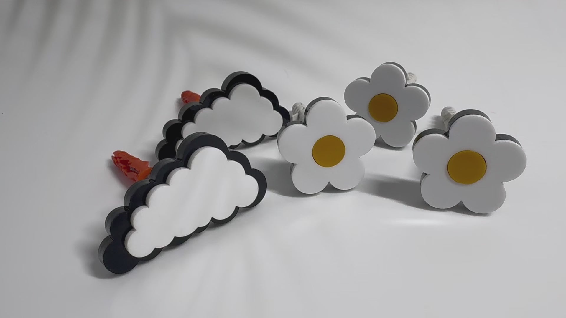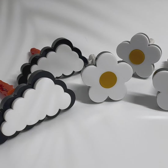 Acrylic wall pegs, crafted from layered, high-quality acrylic for strength and visual depth. Each peg features a bold, playful silhouette—such as hearts, animals, arrows, flowers, clouds, or geometric forms—making them both functional hooks and decorative wall accents.